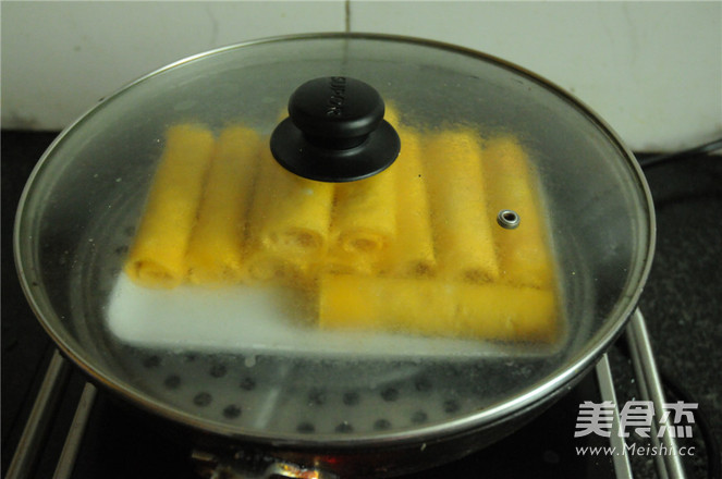 將卷好的雞蛋卷放在蒸鍋上,大火蒸熟