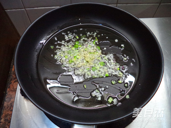 起鍋,爆香姜末與蔥粒