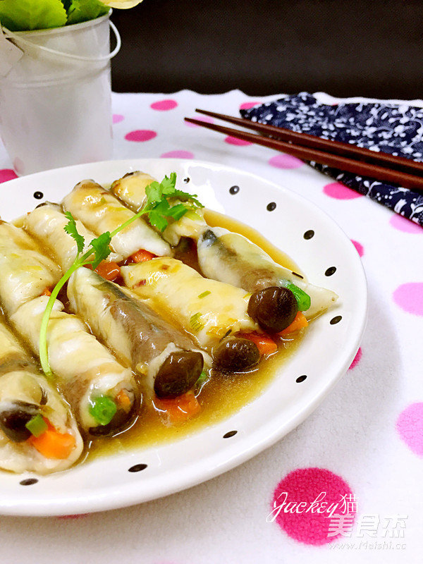 “順德是水鄉,魚在我們這,真的是做出了無窮無盡的花樣,貓印象最深刻的一次吃魚經歷是在一個農莊裡,廚師做的一魚九吃,據說這還不算最厲害,還有人可做出十幾種甚至更多,今天做的這道魚卷是貓改良自本地有名的菜肴皺紗魚卷而成的,其中做了一些小變動,使它更符合自家的口味,如此處理的魚卷有一個最大的好處是不用擔心魚刺,特別是那些喜愛吃魚,又怕魚小刺的人,可以考慮用這種方式來制作哦,另外這道菜肴還很適合孕期的准媽媽食用,魚肉含有豐富的優質蛋白,易吸收,易消化,荦素搭配,吃著沒負擔的哦”