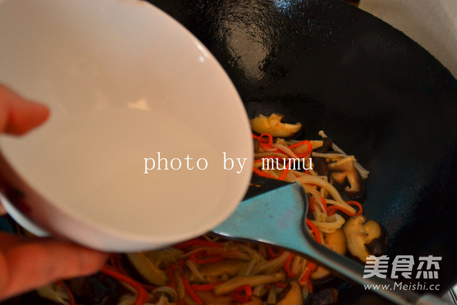 放入香菇翻炒均勻