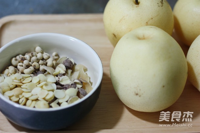 把南北杏、蓮子、川貝、百合洗淨, 雪梨取芯切塊