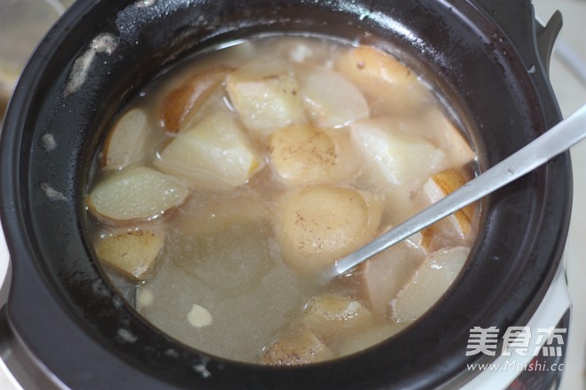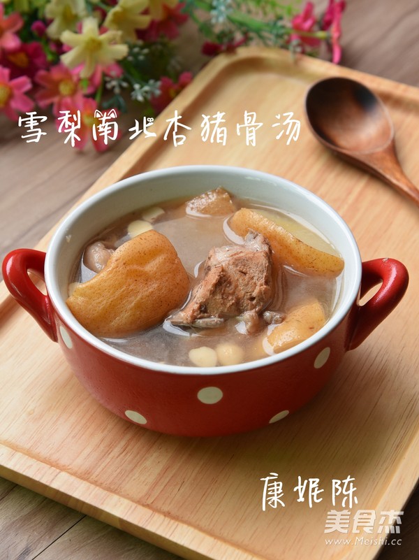 “【雪梨南北杏豬骨湯】是一道美味清甜健康營養的補脾和胃益氣生津湯水。雪梨具有生津止渴、益脾止瀉、清熱潤燥的功效,南北杏具有止咳平喘的作用,雪梨南北杏雪梨湯入口清甜,有祛痰下火、滋養清熱、清心美膚的靓湯。”