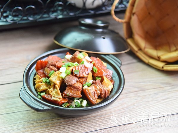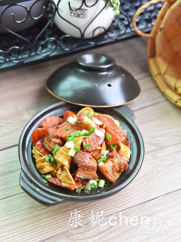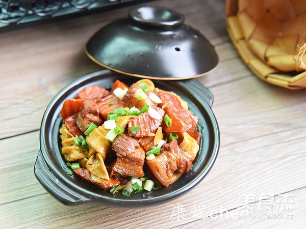 “紅燒肉很受人們喜愛,我個人對紅燒肉又愛又恨,愛它肥而不膩,愛它滋潤的口感,恨它的高卡路裡。如果紅燒肉只做每一人一塊,端上桌會顯得很獨單。豆腐結和胡蘿卜就是為了陪伴紅燒肉的,豆腐結和胡蘿卜吸收了紅燒肉的油脂,滋潤味美,而紅燒肉又因為有豆腐結和胡蘿卜減少了油膩,吃起來更健康。”