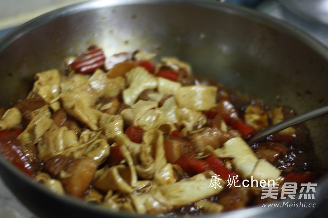 湯汁即將收干時,放入豆腐結,翻炒均勻