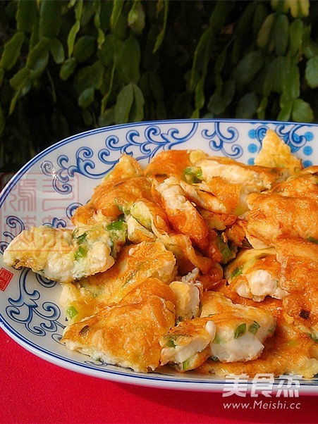 待表面凝固後,翻面煎,待全部煎熟,劃成小塊即可。