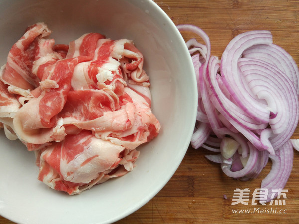肥牛片解凍,洋蔥切條。洋蔥選紫皮或白皮都可以。白皮相對容易熟一些,也不會那麼辣。但是感覺紫皮營養更豐富一些?