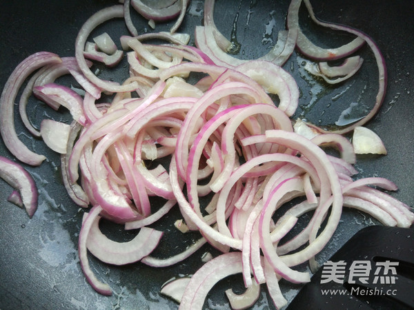 炒到洋蔥發軟。洋蔥超軟後口感發甜,能解牛肉的膻氣。