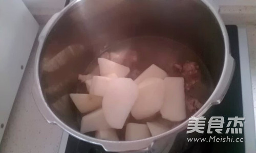等壓力鍋降壓之後,放入白蘿卜塊