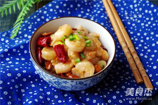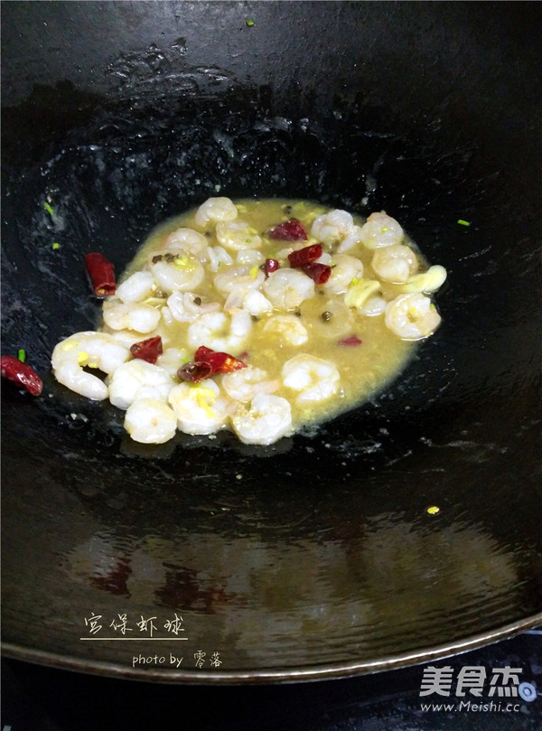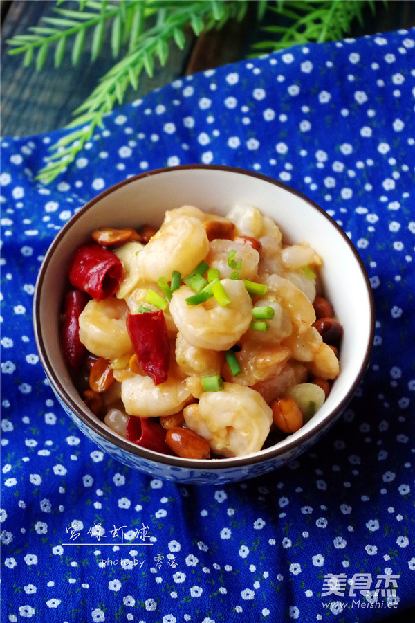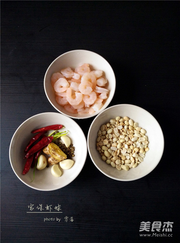 蝦仁挑去蝦線,洗淨;花生用微波爐高火加熱3分鐘,稍涼後搓掉花生衣;再備些干辣椒、花椒、老姜、大蒜、小蔥;