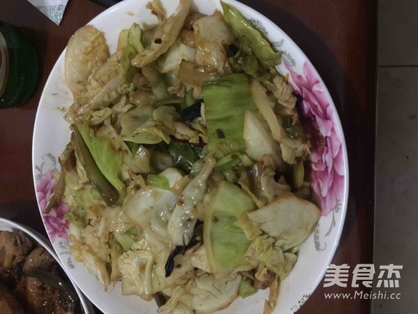 將洋白菜放入鍋中翻炒,並加入陳醋,鹽。翻炒後出鍋