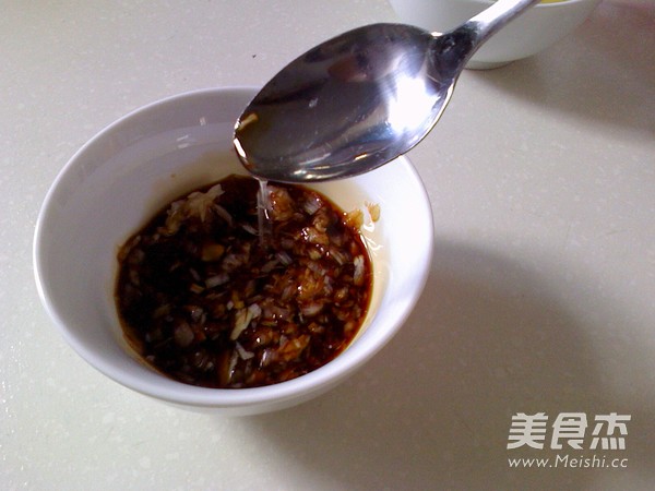 盅好的蒜泥勺出碗裡,然後生抽和熱油拌勻