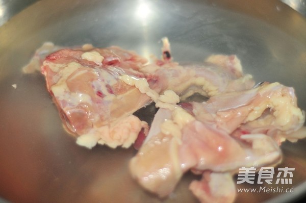 鍋裡加入水和雞架,水開後焯10分鐘,撈起