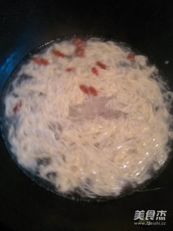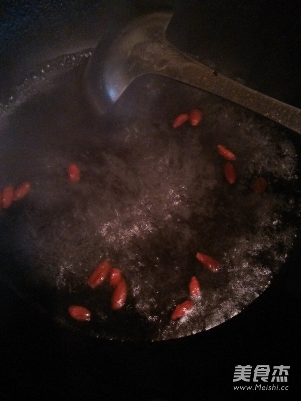 鍋裡放入適量的水,加入枸杞子煮開
