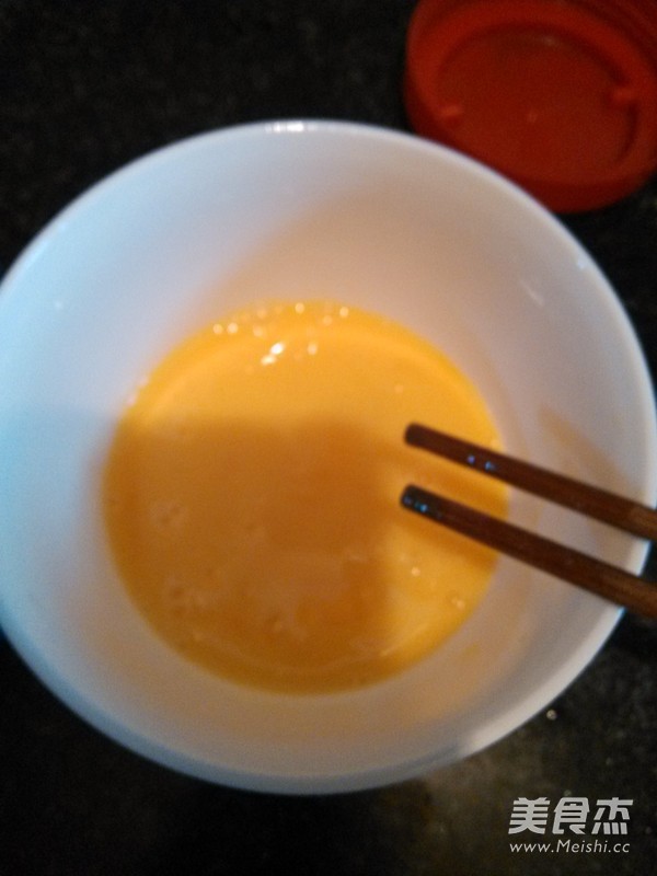 雞蛋打在碗裡,用筷子攪散