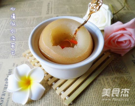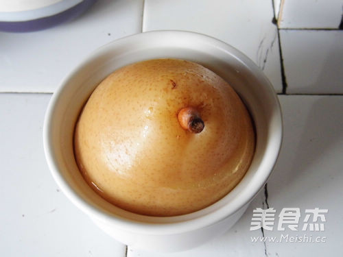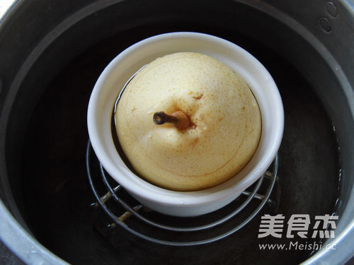 蓋好雪梨蓋後上屜蒸1到1.5小時,如果不方便的話也可以把雪花梨切碎在蒸
