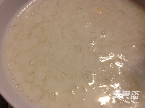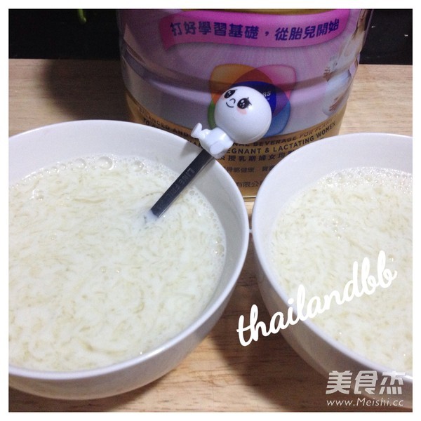 定時炖好之後,盛入碗內趁熱加入奶粉