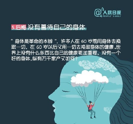 第十八個遺憾:沒有注意身體健康。從現在開始,努力改掉一些壞習慣,為自己和身邊的人,健康生活。