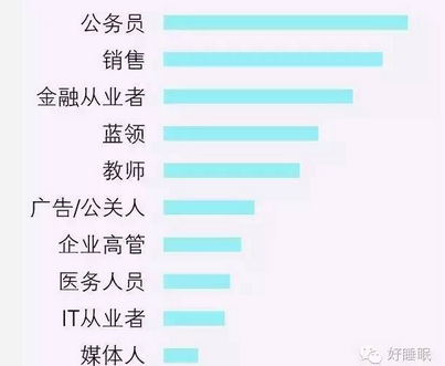 十大職業中,睡眠指數得分從高到低的排名依次是公務員、銷售、金融從業者、藍領、教師、廣告/公關人、企業高管、醫務人員、IT從業者、媒體人。各職業的睡眠指數得分都有所上升,但媒體人連續兩年睡眠指數得分墊底。